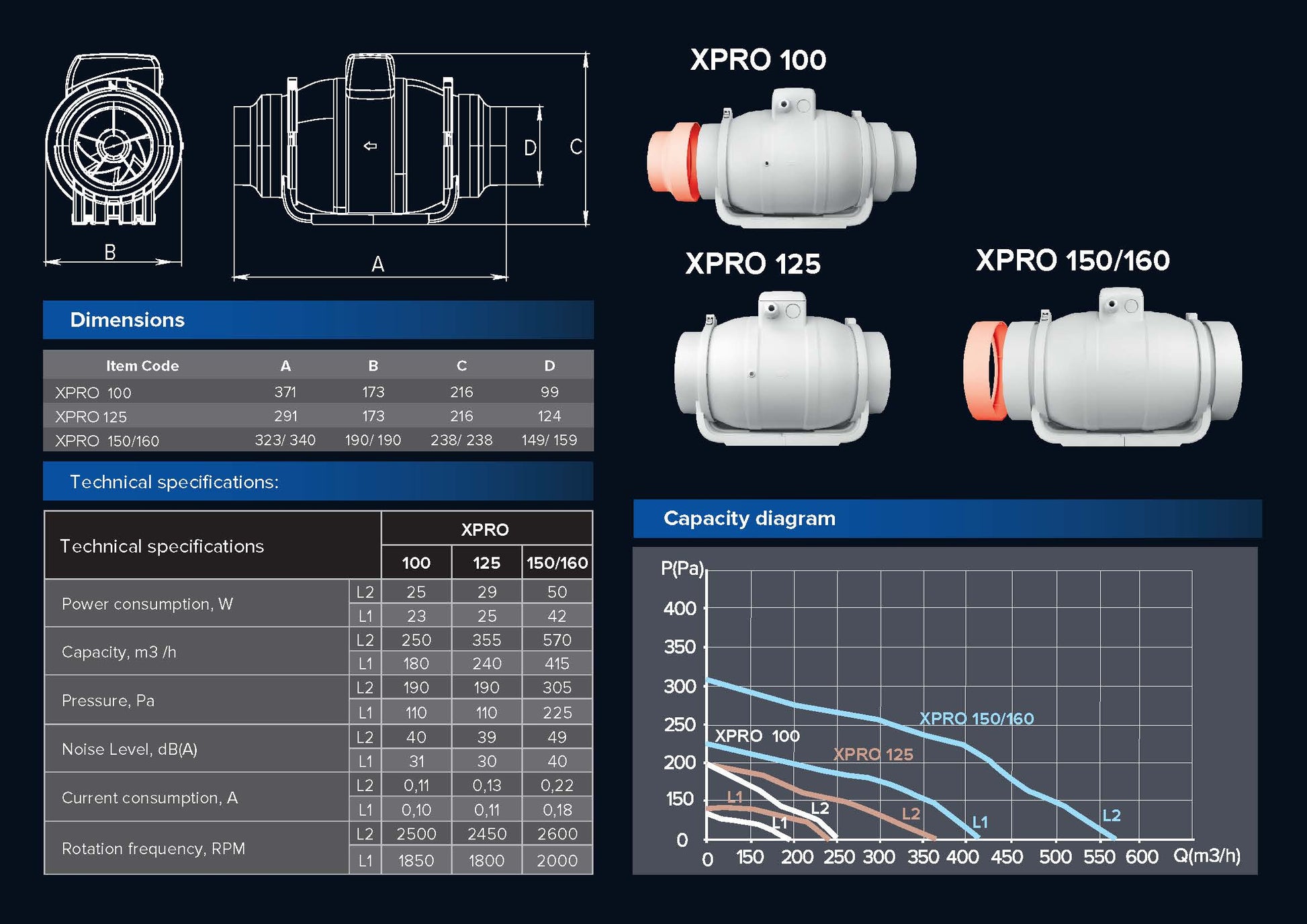 Model: XPRO (XFLO Pro Inline Mixed Flow Fan)